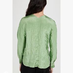 Crinkled Italian fabric catches the light in our easy popover blouse shaped by dropped shoulder and a single pleat V-neckline for a soft drape