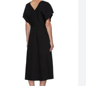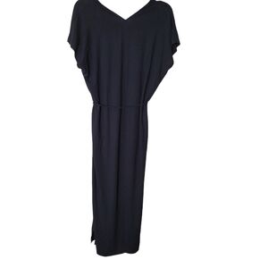 Vince Double V-Neck Cap Sleeve Knit Midi Dress Stretchy Black Size XS New