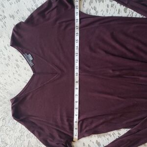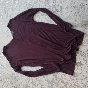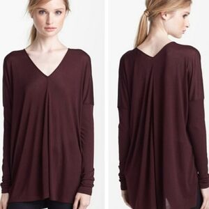 Vince Double V-Neck Drop Long Sleeve Tee Wine SzXS