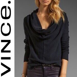 Vince Drape Front Cowl Neck Alpaca Wool Blend Boho Sweater in Black S Minimalist