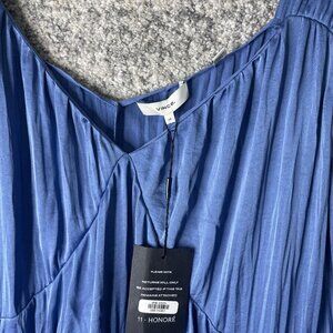 Vince Dress Womens 2X Blue Pleated V-Neck Sleeveless Maxi 11 Honore Plus A-Line