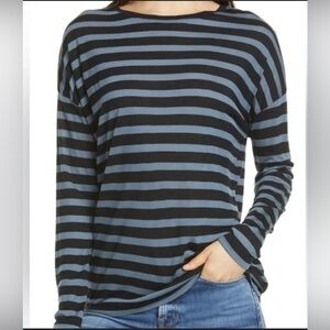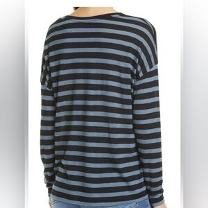 Vince Drop Shoulder Stripe Tee Long Dolman Sleeve Women’s Size Small Blue Black