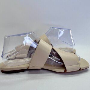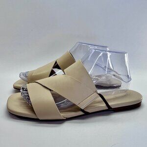 Vince Dylan Leather Flat Sandals Size 9.5M Beige Asymmetrical Slide Shoes