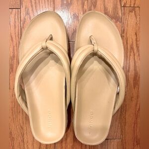 The Vince Espadrille Thong Platform Slide Sandals are an elevated version of the classic flip flop. Prepare to feel the comfort that the super soft padded leather straps will offer you! Details: * Extra-padded straps and contoured footbed for added comfort * Slip on thong styling * Leather upper and lining * Jute-wrapped midsole * 1.65" platform * Rubber sole * Excellent condition * Size 8.5