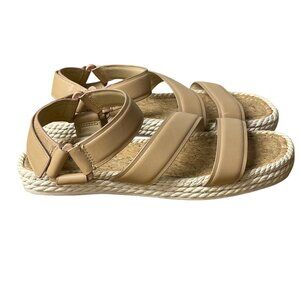 Vince Elian Leather Platform Woven Espadrille Sport Adjustable Sandals Tan Sz 8