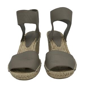 Vince Espadrilles Taupe Leather Wide Ankle Strap Jute Wedge Sandals Size 8