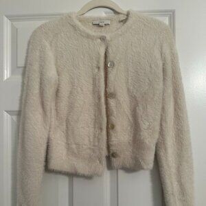 cream knit, eyelash texture, cropped cardigan, plush fabric, luxe cozy, neutral tone, soft sweater, oversized fit, designer inspired, winter layers