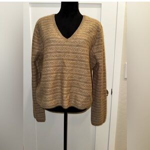 Vince Fair Isle Heather Sand Shell Cashmere V Neck Sweater XL