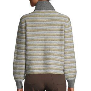 Vince Fair Isle Striped Turtleneck Sweater, Heather Grey Multi
