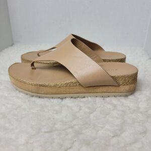 Vince Fatima Women's Sandals Size 7.5 Tan Leather Platform Flip Flop Thong Shoes