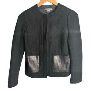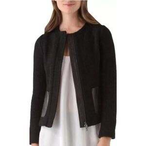 Vince Faux Leather Wool Blend Tweed Jacket Black Size 4