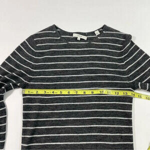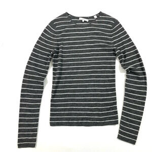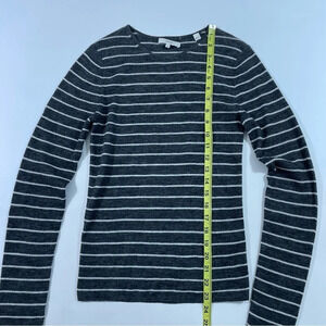Vince Ribbed Wool Sweater Long Sleeve Grey White Stripe Fitted Size Medium