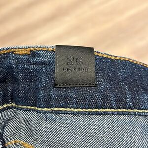 Vince five pocket relaxed rolled dark wash jeans. Zipper fly. Stretch cotton denim fabric. Tapered leg. Gently used preowned condition, see photos. Most items ship next business day.