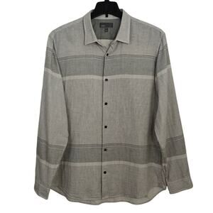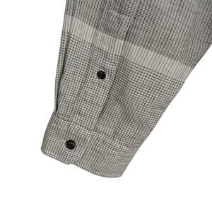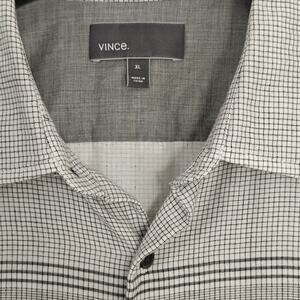 Vince lightweight flannel button front shirt in men's size XL. Gray and white 100% cotton. Grid check pattern. Long sleeves.