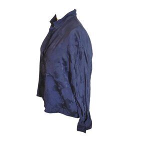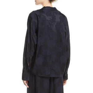 Vince Floral Jacquard Popover Top Oversized Floral Damask Blouse Navy Blue Sz M