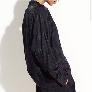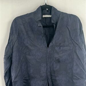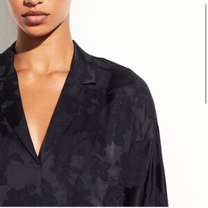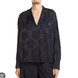 Vince Floral Jacquard Popover Top Oversized Floral Navy XS