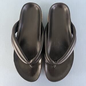 The Vince Forest Black Espadrille Thong Platform Slide Sandals are an elevated version of the classic flip flop. Prepare to feel the comfort that the super soft padded leather straps will offer you!