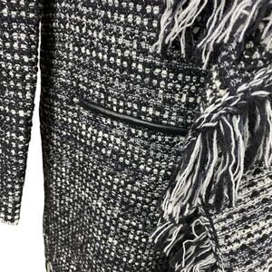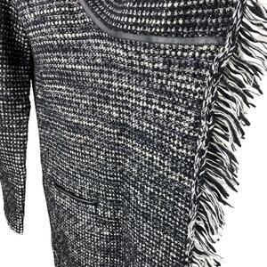 Vince Fringe Wool Lamb Leather Oversized Heathered Boucle Knit Sweater Coat