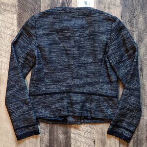 Vince Fringe-Trim Boucle Jacket Blazer Zip-Front Heathered Black
