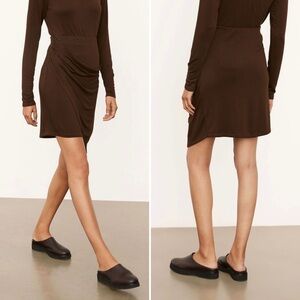 Vince Gathered Skirt Dark Brown Jersey Knit Size Medium Faux Wrap Drape New NWT