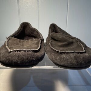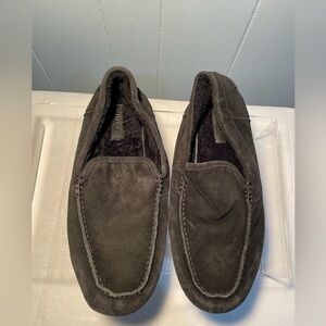 Suede loafers wrap the feet in casual comfort around the home and on the go. Suede upper Sheepskin lining Rubber sole Fur type: dyed shearling Fur origin: Australia Imported. Vince.