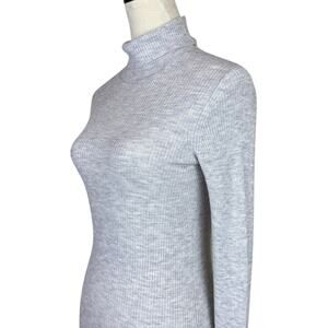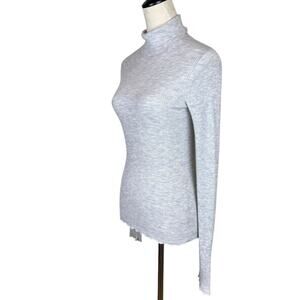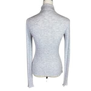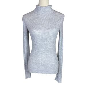Vince Gray Ribbed Lettuce Hem Long Sleeve Cashmere Blend Knit Turtleneck Sweater