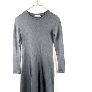 Vince Gray Sz XS Asymmetrical Hem Midi Dress Crew Neck Cotton/Modal Blend