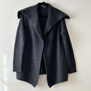 Vince Gray Wool Yak Textured Honeycomb Chunky Knit Open Cardigan