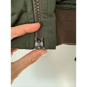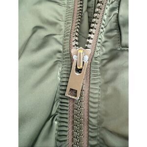 Condition: jacket features a double zipper and bottom zipper pull is broken. This is cosmetic only and does not affect the wearability in any way. Some of the hardware (zipper, snaps) show signs of wear.