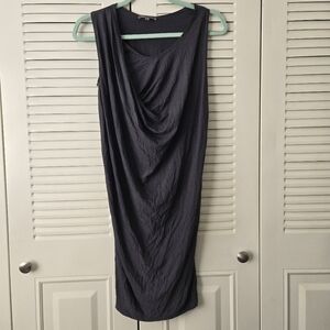 Vince Grey Sleeveless Dress XS Gather Round Neck Midi Wiggle #221