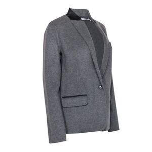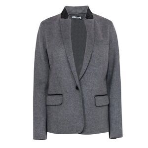 Vince Grey Buttoned Wool Blazer Leather Collar Sz 8