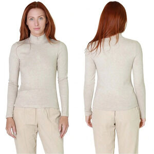 Vince Half Zip Mock Neck Longsleeve Sweater Soft Jersey Knit in Heather Oak M