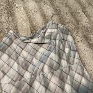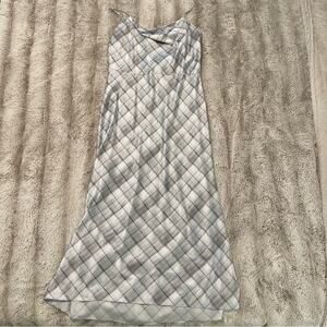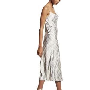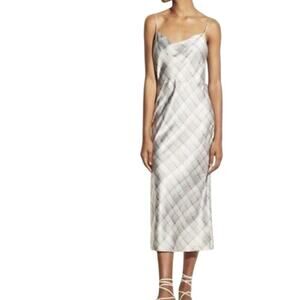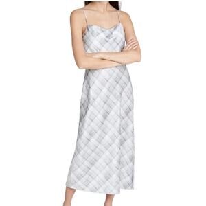 Vince Hazy Plaid Cowl Neck Satin Grey Maxi Slip Dress