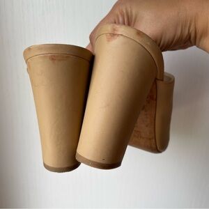 Chic tan mules with a block heel by Vince. Ideal for versatile styling. Comfortable and stylish. Size Women's 10. Minor scuffing on back of heels as shown but overall in really great condition.