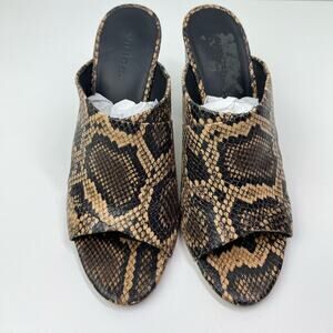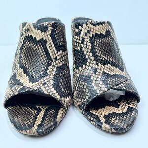 Vince Heath Leather Snake Print Cross Over Strap Casual Mule Sandals