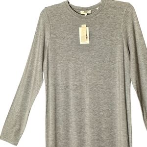 Vince Heathered Gray Crew Long Sleeve Single Side Slite Cotton Maxi Dress Sz L
