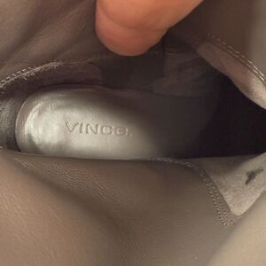 -Vince Hela Tan Suede Leather Booties Size 6 Ankle Boots Almond Toe Classic-Condition Light sole wear, good overall condition. No rips/tears