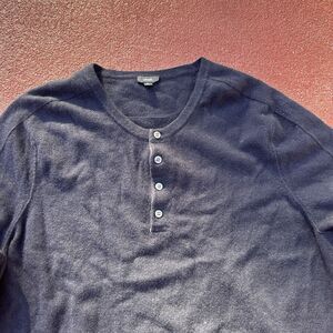 Vince Henley Buttoned Sweater In Navy Blue Cashmere XL