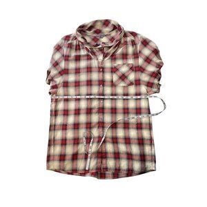 Vince Heritage Plaid Cowl Neck Button Down Roll Tab Holiday Top