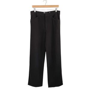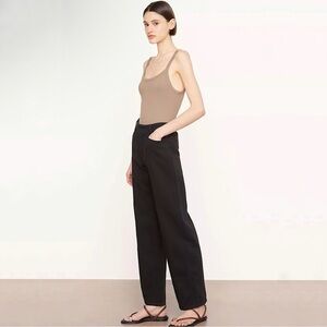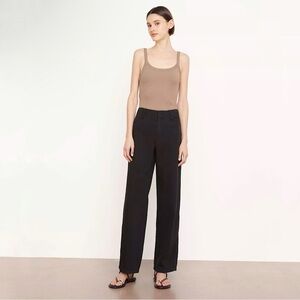 Vince High Waist Washed Casual Pant Wide Leg Cotton Linen Twill Trouser Black 12