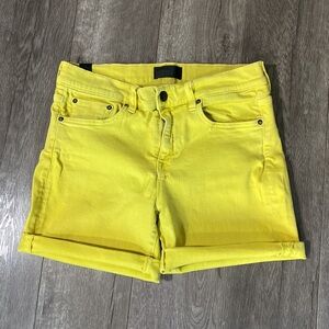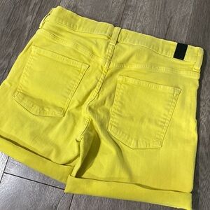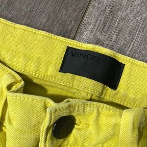 Vince jean shorts. Yellow denim (kind of a lime green'ish color). High-rise. Cuffed; can be rolled down as Bermuda shorts too. Zipper and button closure. Relaxed style. Perfect for spring & summer! Good used condition