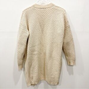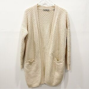 Vince Honeycomb Longline Cardigan Chunky Knit in Winter White Small Yak Wool