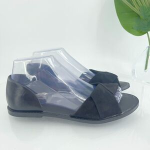 Vince Idara Open Toe Sandals Women's 7 Black Blue Straps Closed Heel Flats