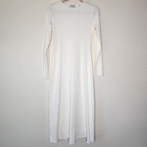 Vince Ivory Ribbed Long Sleeve Midi Dress M