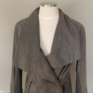 Vince Drape Paper Weight Suede Biker Jacket in Taupe-y Grey.