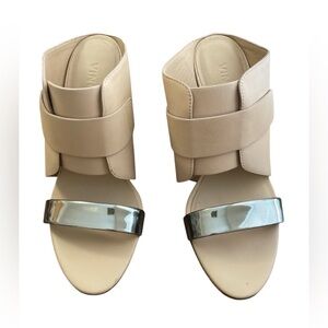 Vince Karima black silver leather open toe wedge slides