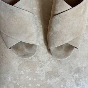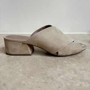 Vince Karsen Beige Suede Block Heel Slide Sandals Womens Size 8.5 M Open Toe