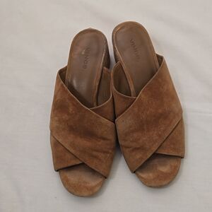 Vince Karsen Suede Sandals Cedar Block Heel Criss Cross Straps Size 8
