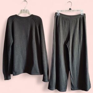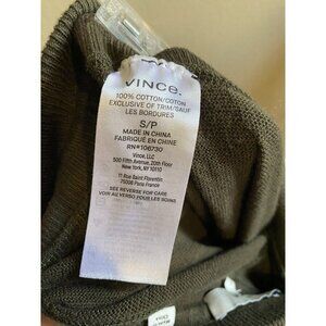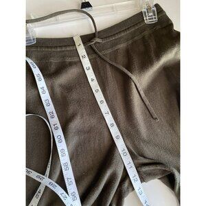 This Vince knit Sweater Pants set in size Small (both top and bottom) features a trendy wide-leg cropped style, high waist pant - perfect for the winter and fall seasons. The set includes a crew neck sweater and matching draw string pants, both made from a comfortable 100 percent cotton knit fabric in a solid olive green color.
