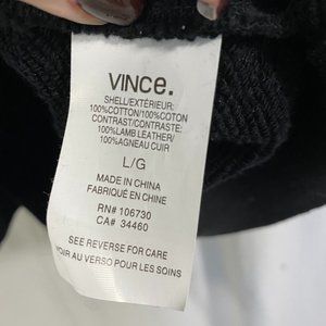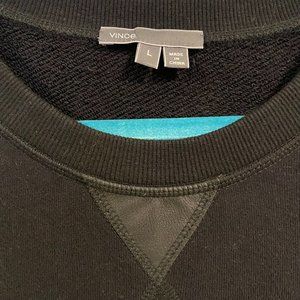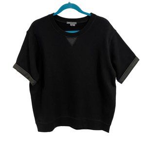 Vince Lamb Leather Trim Short Sleeve Black Sweatshirt Size L